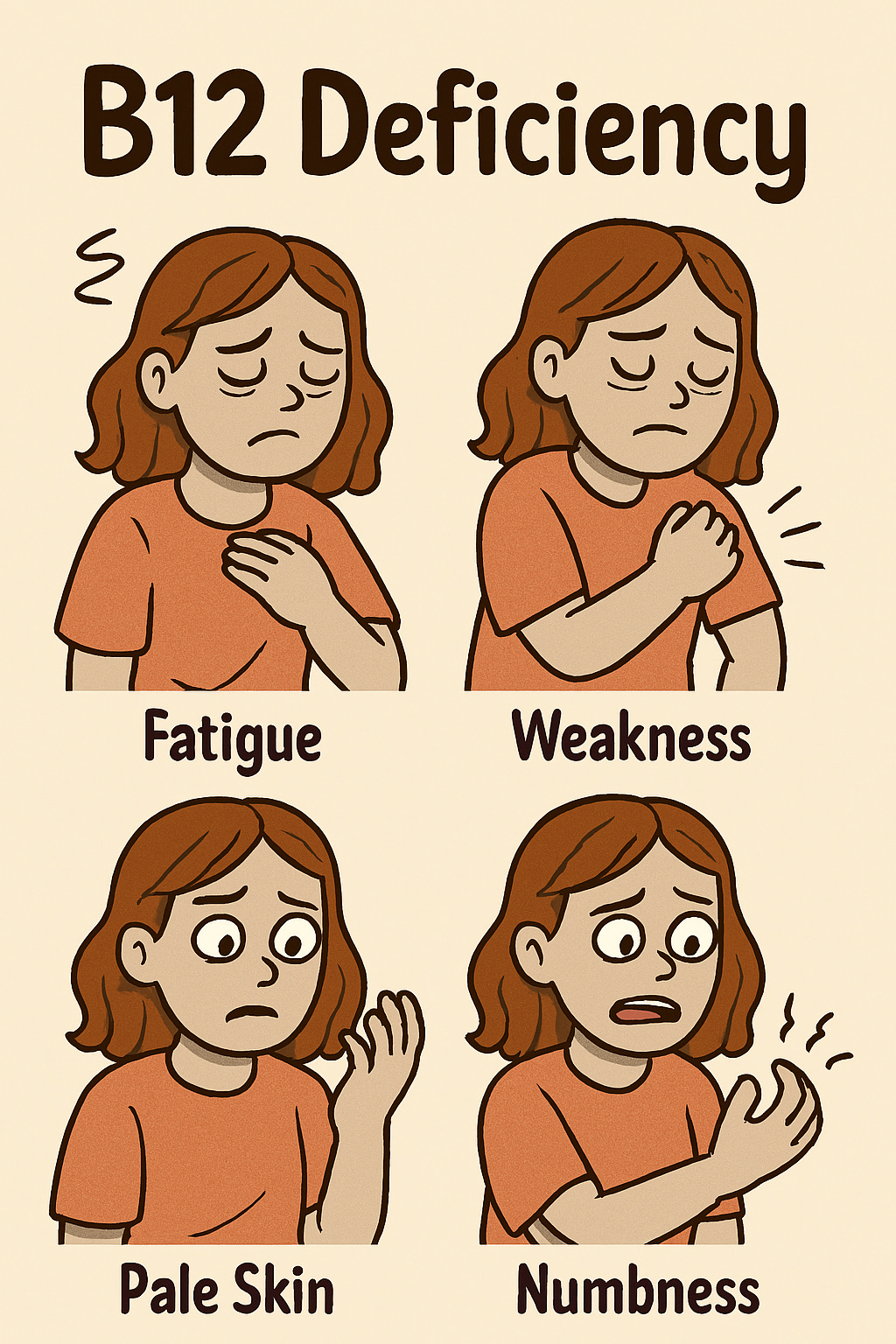 إذا تعطلت هذه العملية — بسبب بعض أمراض المعدة أو الأمعاء — قد يحدث نقص B12 رغم أن النظام الغذائي جيد.